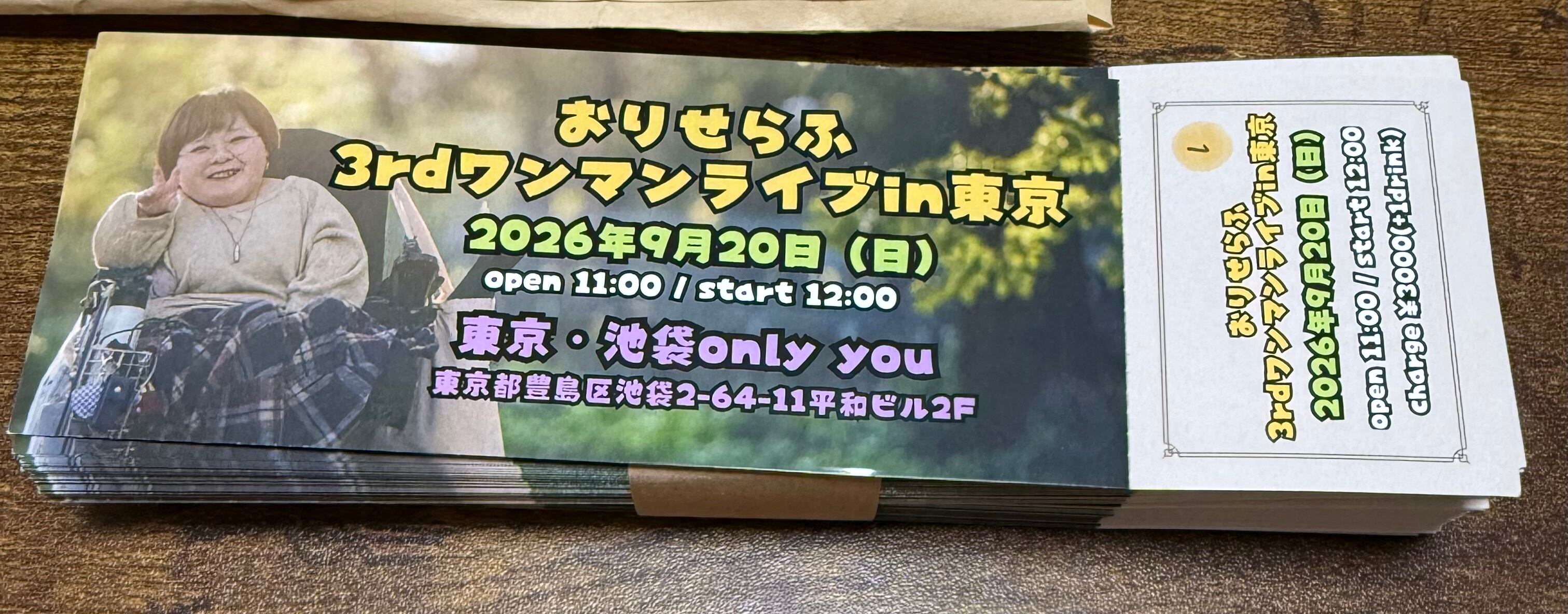 9月20日(日)3rdワンマンライブ紙チケット